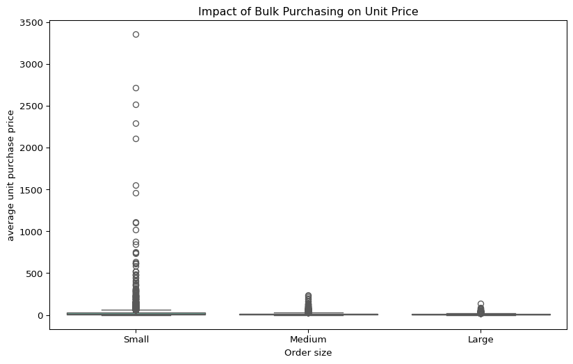 Bulk Purchasing Efficiency: Larger orders benefit from ~72% lower unit costs, confirming economies of scale in purchasing.