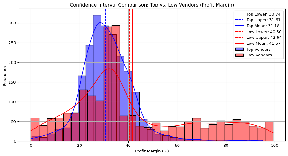 ๐น Analysis 6 โ Profit Margin Confidence Intervals for Top vs. Low Vendors